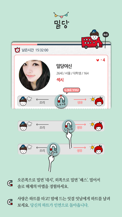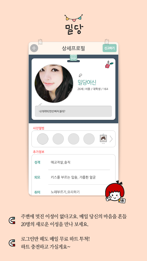 1.매일 오전 11시, 오늘의 인연 20명을 소개 받으세요. 최고의 이성이 당신을 기다립니다.