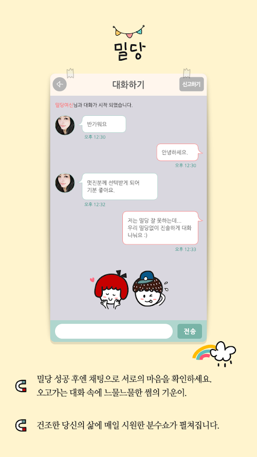 밀당은 소셜데이팅입니다. 멋진 이성과의 데이트, 저녁의 드라이브를 꿈꾼다면 밀당에서 새로운 인연찾기에 도전하세요. 솔로와 전혀 다른 당신만의 새로운 인연이 펼쳐집니다.