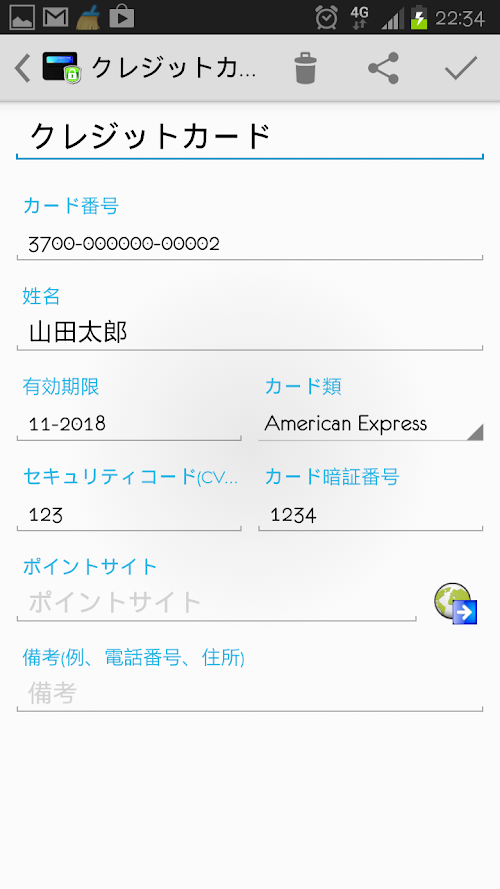 パスワードの管理だけではなく、パスワードお財布は下記のよく使われる、人気データを保存できます: