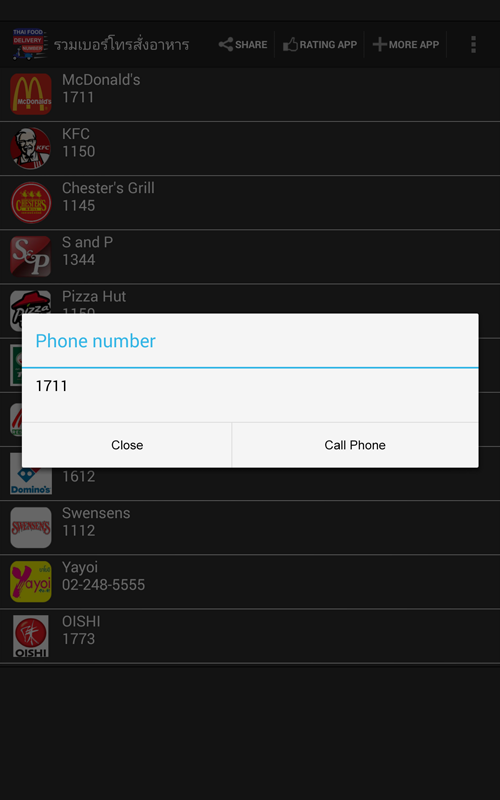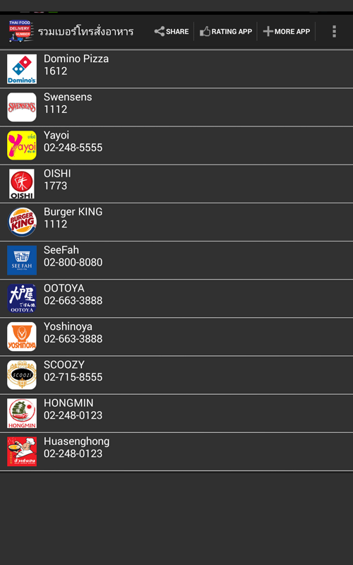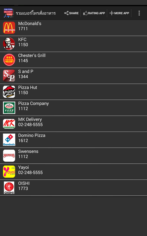 Application นี้จัดทำขึ้นเพื่อพัฒนา android ให้สะดวกในการโทรสั่งอาหารภายในประเทศไทยThai Food Call Phone Number: Total telephone order food delivery (Delivery).
