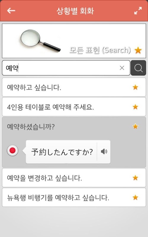 - 검색기능을 통해 상황에 필요한 표현은 바로 찾아 활용할 수 있습니다.
