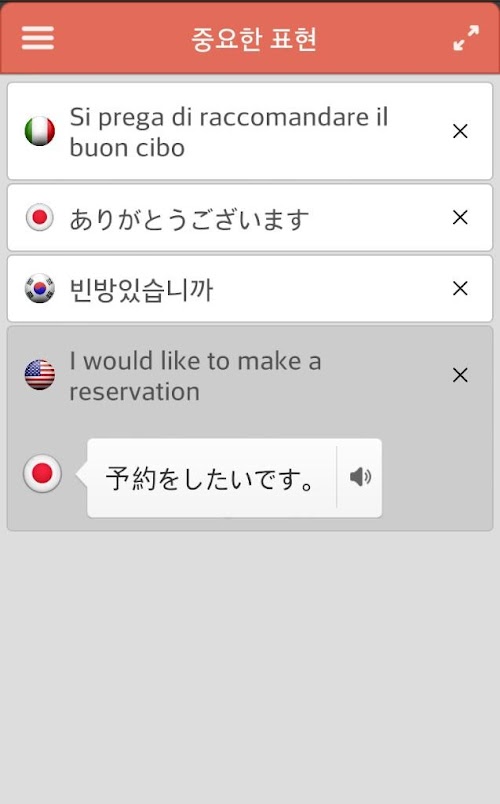 - 중요한 표현은 저장해 두었다가 여러 언어로 번역해서 사용할 수 있습니다.