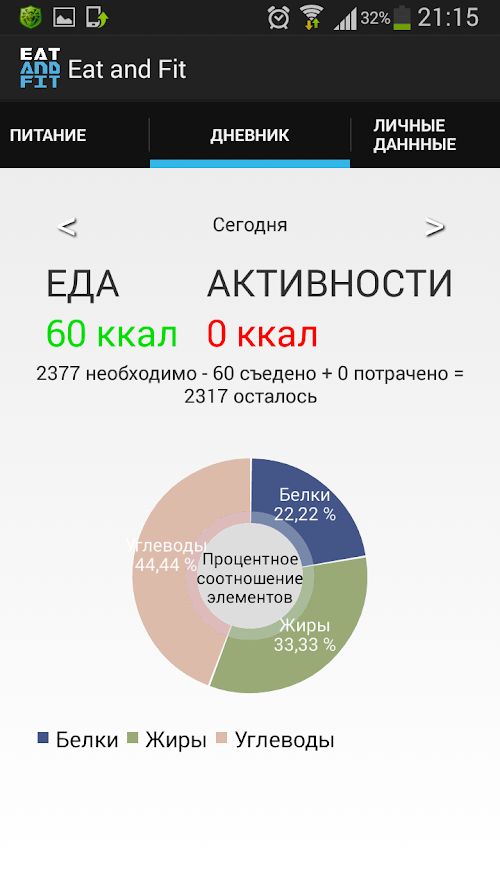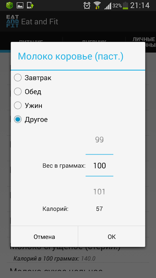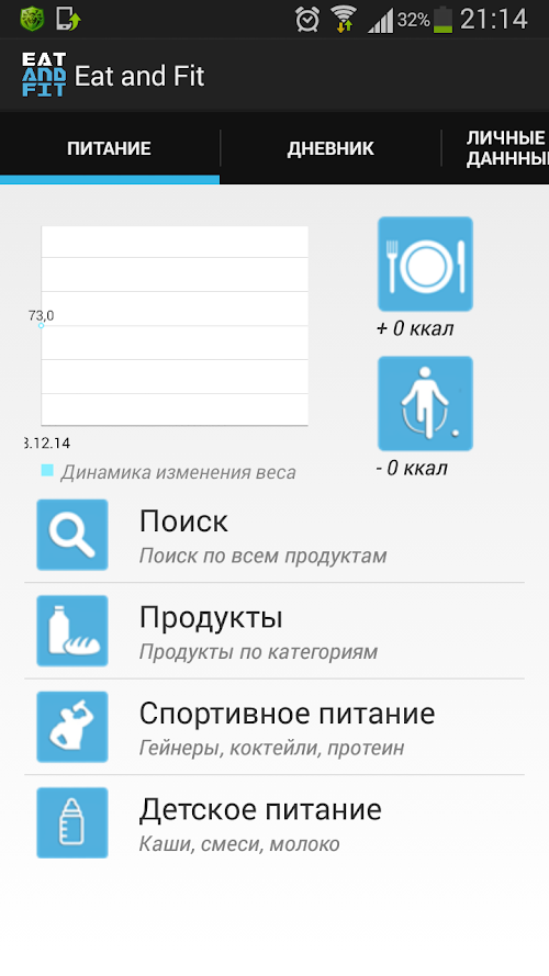 Eat and Fit мгновенно посчитает калорийность ваших самых любимых блюд в режиме онлайн, а самое главное заставит добиться поставленной цели!Eat and Fit calorie instantly thinks of your most favorite foods online, and most importantly make to achieve this goal!