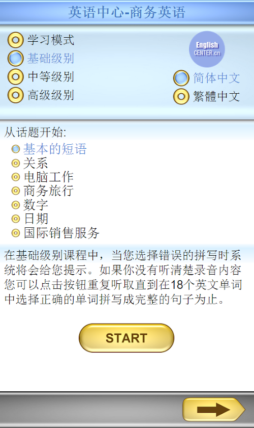 "English Center - Business English" repeat applications will enhance students learning English in the process of knowledge difficulties encountered. The application will automatically adjust the focus of repeated words and sentences.