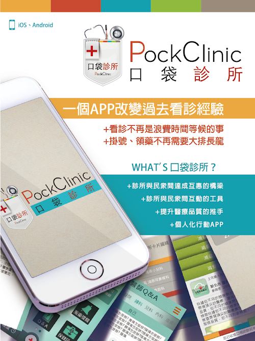 "PockClinic pocket clinic" for people to interact and build a bridge clinic, clinic strengthen the relationship between the public service. From the perspective of the people, to improve the experience of the past to see the doctor, and one-way information conduit wait a long time. By PockClinic, you can quickly manage their personal medical information, including to the clinic information, online registration, healthcare information, medication reminders, physician QA, call number notice ... and other diversified services.