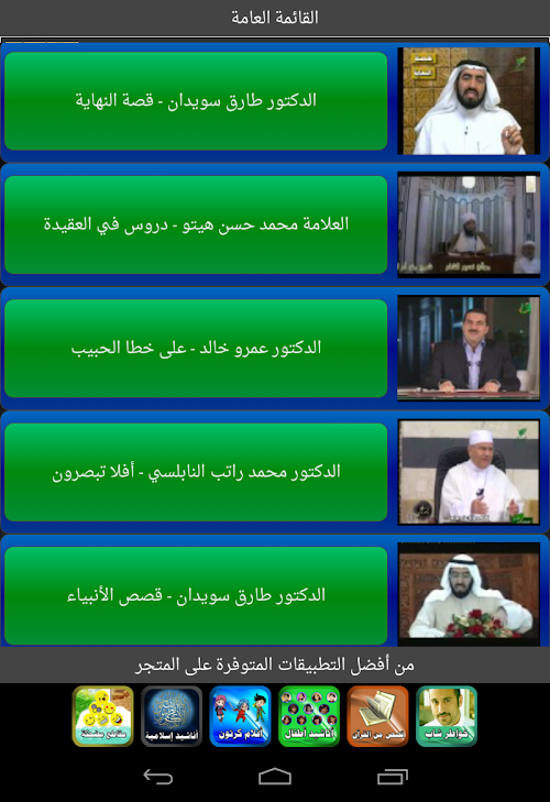 - Includes application currently more than 8 religious chains, for many scientists and advocates, including Dr. Hassan Hito, Tariq Suwaidan, Amr Khaled and many more.