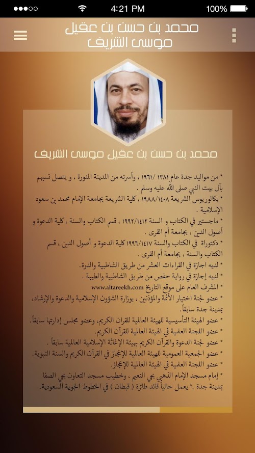 الدكتور محمد حسن عقيل موسى الشريف داعية، وإمام، وطيار، وأستاذ جامعي، ومؤلف، متخصص في علم الكتاب والسنة، يعتبر الدكتور محمد موسى الشريف من القلائل في العالم العربي الذين جمعوا بين فنون عدة وبرعوا وبرزوا فيها بشكل واضح وملفت، فإضافة لكونه طيار مدني، فقد تمكن من إكمال الدراسة الأكاديمية الشرعية وحصل على الدكتوراه في الكتاب والسنة، وحفظ القرآن الكريم وأجيز في القراءات العشر من طريق الشاطبية والدرةApplication history up past with the present, it is not his past he has no present, a collection of videos on the history of Muslims perform Dr. Musa Sherif: Andalusia figures, Tunisian figures, Ottoman figures, the French campaign in Algeria, the French campaign on Egypt, the French campaign in Algeria