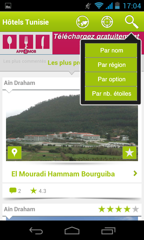 If you are looking to download other versions of Hôtels Tunisie Android App, We have 1 version in our database. Please select one of them below to download.