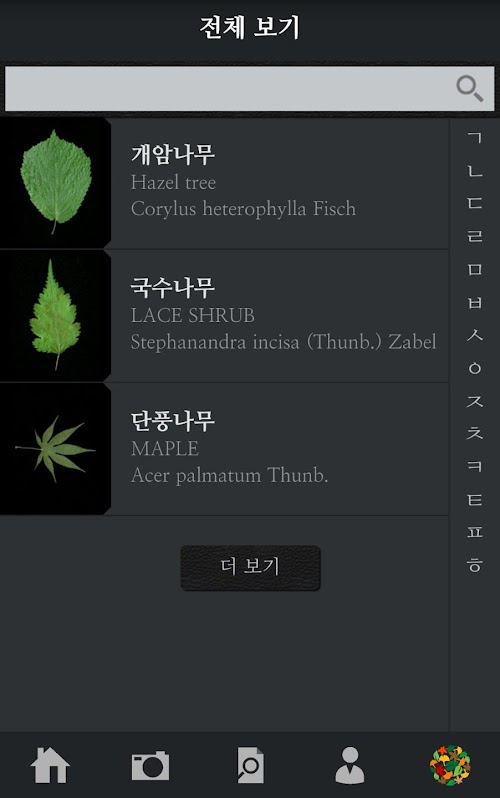 식물을 선택하면 식물의 학명 , 형태 , 분포위치와 자세한 설명을 볼 수 있습니다.