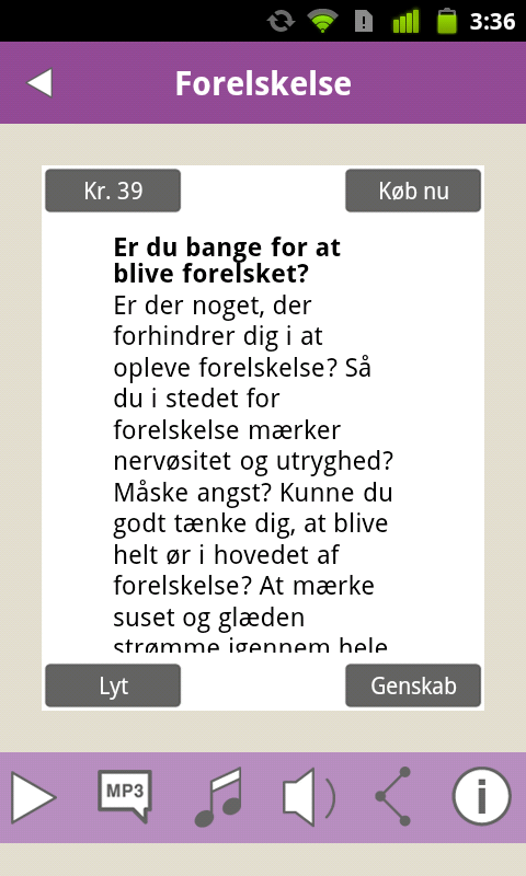 You can later buy other selvhypnoser directly from the application. Prices for these are kr. 99, - When using a hypnosis in Danish, you'd better hit the emotional part of your brain, as you listen to your primary language.