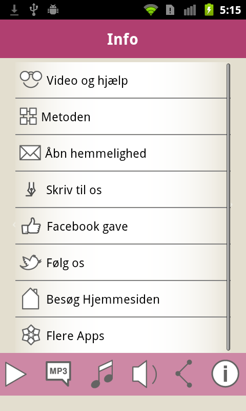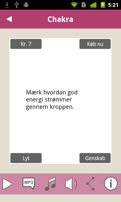 There follows a free hypnosis "I do what I want" with your download. You can later buy other selvhypnoser directly from the application. Prices for these is 99 kr.