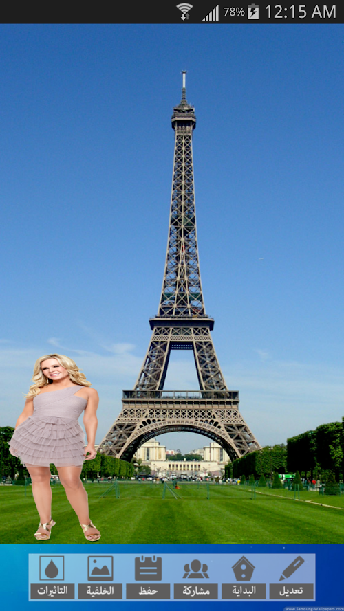 ماعليك سوى اختيار الصورة واجراء تعديلاتك عليها وبعد ذلك اختيار الخلفية, ويمكنك مشاركتها من اصدقائك وحبايبك على شبكات التواصل الاجتماعي كا الفيسبوك والانستجرام والواتس اب واذهلهم بصورك. Would you like to enter your photos in the finest backgrounds, this simple application and without the use of a computer Kalfotoshob crippling jealousy and programs, you can through this application merge your photos and entered into the backgrounds of the finest monuments and beautiful world simply and conveniently