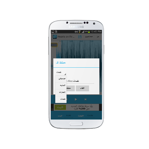 وكل الملفات الصوتية وذلك لصنع نغمات بنفسك, ويمكنك عمل هذة النغمات للمنبة والاشعارات ايضاً كما يمكن تعينها للجهات الاتصال الموجودة لديك.