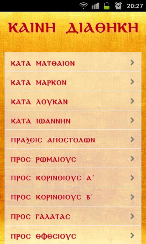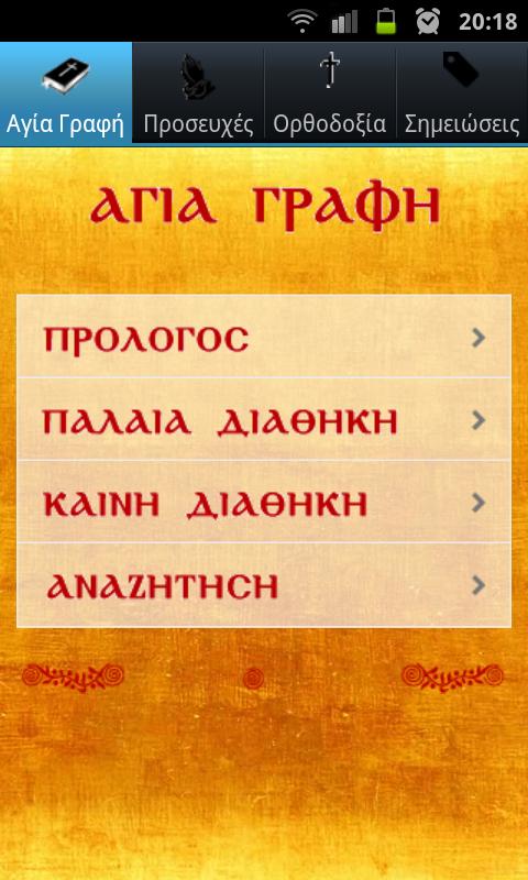 Επίσης διαθέτη την ενότητα "Προσευχές", και ένα χρήσιμο σημειωματάριο.The application of the Bible contains the complete Bible in Ancient multitone * text translation in new Greek simultaneously, and the following sections.