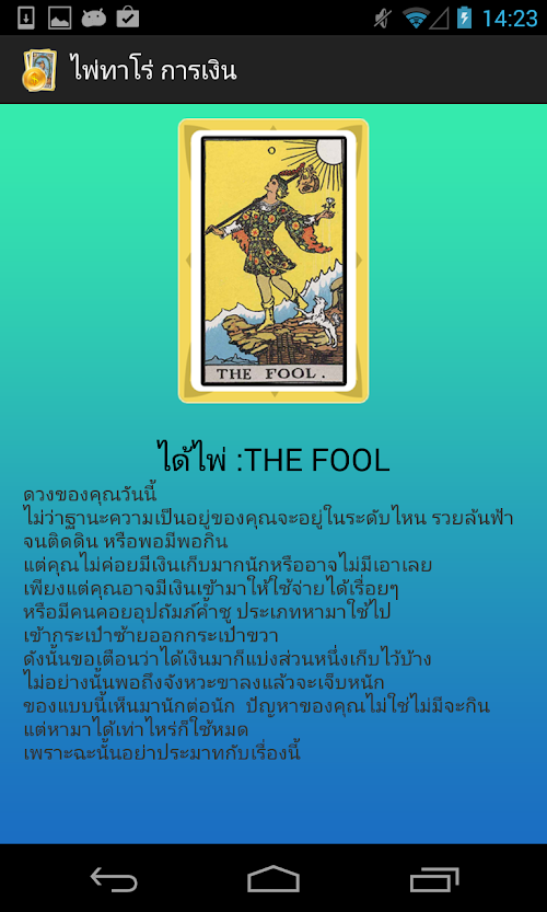 ควรทำนายเพียงวันละครั้ง การทำนายดวงเล่นๆ อาจดึงชีวิตคุณให้ตกต่ำไปตามคำทำนายYour finances are good or not. Just shake the phone to shuffle career guidance.