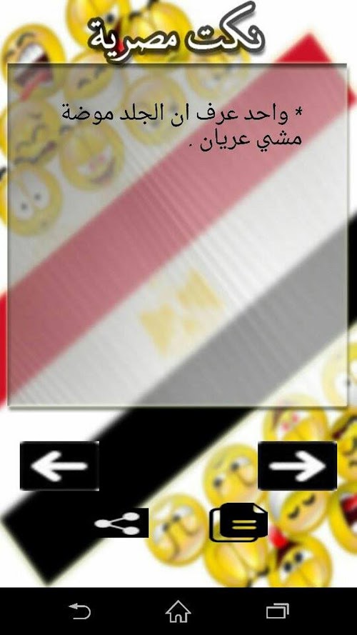 يوجد بالبرنامج زر للنشر وللنسخ لمشاركة النكتة مع الاصدقاء