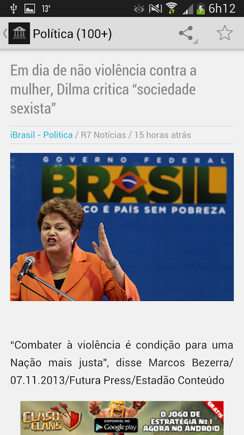iBrasil is an innovative application that lets you real-time access to the latest News from Brazil directly from your Android phone or tablet time, presented in a simple and aesthetic way. The iBrasil includes information collected from all the top newspapers, websites and magazines Brazilian, all in one application.