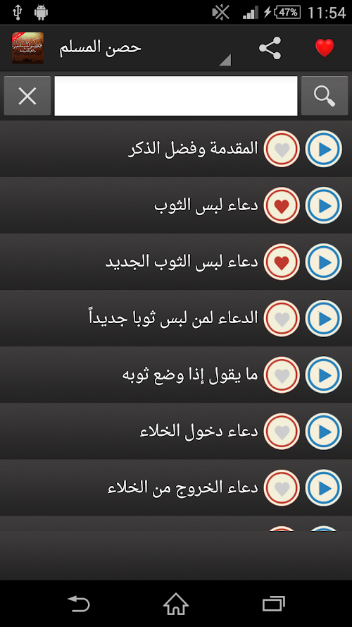 حصن المسلم .. تطبيق يحتوي على الأدعية المأثورة عن النبي محمد صلى الله عليه وسلم، يمكنكم سماع الادعية دون الحاجة الى الاتصال بالانترنت كما يمكنكم البحث في الأدعية وإضافتها إلى القائمة المفضلة لتسهيل الوصول إليها.Fortress of the Muslim .. application that contains prayers sayings of the Prophet Muhammad, peace be upon him, you can hear the prayers without the need to connect to the Internet and you can search in supplications and add them to your favorites list for easy access.