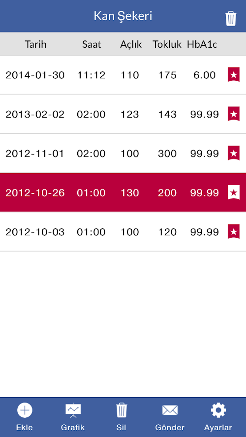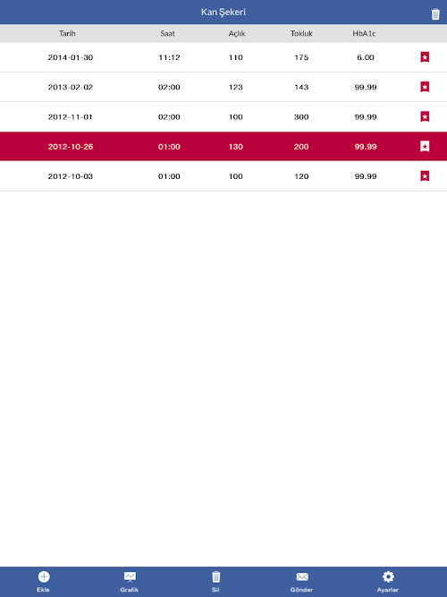 Kan Şekeri uygulaması ile kan şekerinizi kayıt ederek takip edebilirsiniz. Kan Şekeri uygulaması ile www.i-healthfile.com üyeliğini ücretsiz olarak başlatabilir ve bilgilerinizi iki yönlü olarak kayıt altına alabilirsiniz. Bu uygulama ile girdiğiniz değerlerin grafiğini çıkarabilir, istediginiz zaman da e-posta ile doktorunuza gönderebilirsiniz. Diyabet (diabet) hastaları için vazgeçilmez bir uygulama.