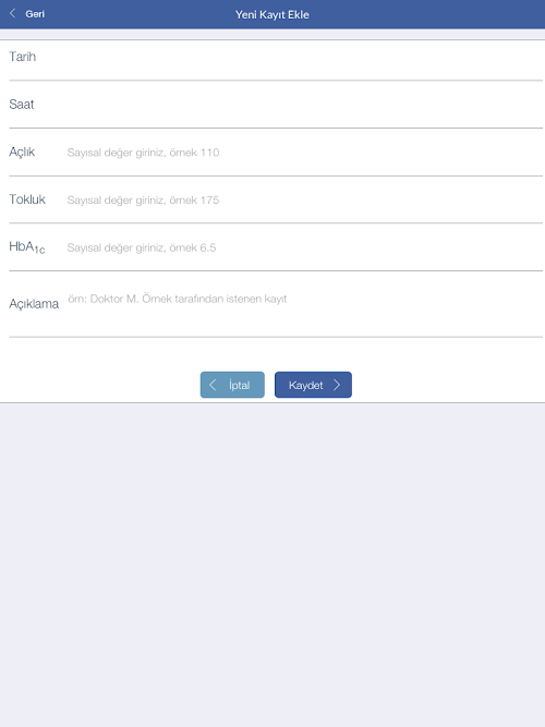 Kan Şekeri application is designed to keep a record of blood sugar measurements. The application will automatically sync with the www.i-healthfile.com website creating an accurate and permanent record. The graphic feature may also be used to understand your measurements and progress.Blood Sugar by registering with the application can track your blood sugar. Blood Sugar www.i-healthfile.co with the application can initiate a free membership and you can register your information in two ways. With this application, enter the value that you can enjoy the graphics, any time you want you can send an e-mail with your doctor. Diabetes (diabetes mellitus) an indispensable application for patients.