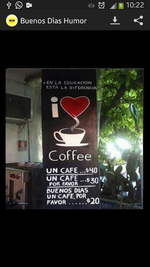 Comparte imágenes de buenos días graciosos y simpáticos y divertidos con Slide&Share. Solo tienes que deslizar el dedo por la pantalla de derecha a izquierda o de izquierda a derecha para pasar las imagenes, y mantener presionada la imagen para compartirla a traves de las apps que tengas instaladas en tu dispositivo.