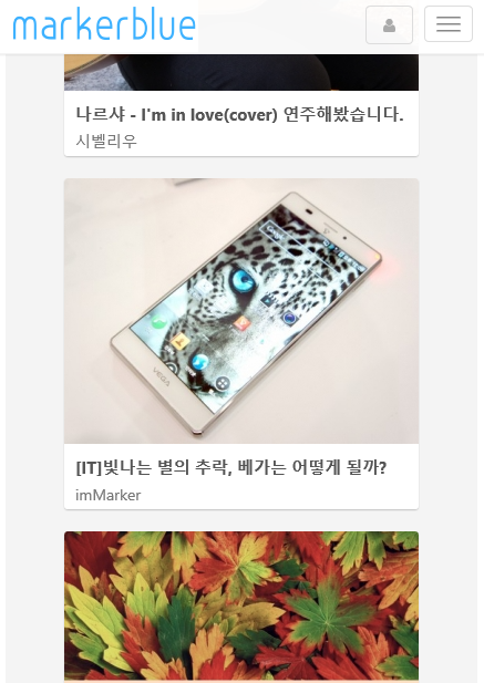 IM marker began first as a campus destination Webzine October 2014. Than enjoying near campus issues based on the Chungcheong region consists of content that can be shared. The IM also supports both markers PC, tablet, smartphone and more than IE8, Chrome, Firefox and is optimized for Safari.
