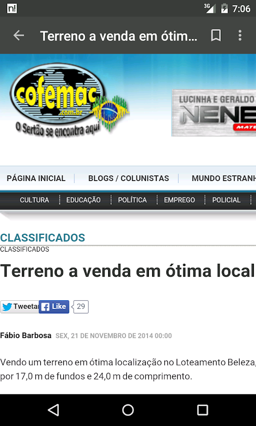 IMPORTANTE: Este aplicativo utiliza Google Analytics (http://www.google.com/analytics), uma ferramenta de análise que coleta dados de acessos anônimos e nos auxilia melhoria contínua deste aplicativo. Stay updated with the news Uiraúna Area through COFEMAC Portal! The Hinterland in the palm of your hand!