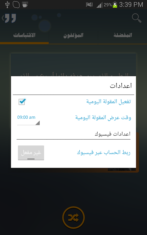 - اضافة اعدادات البرنامج لتفعيل التنبيهات باقتباسات متنوعة يومية