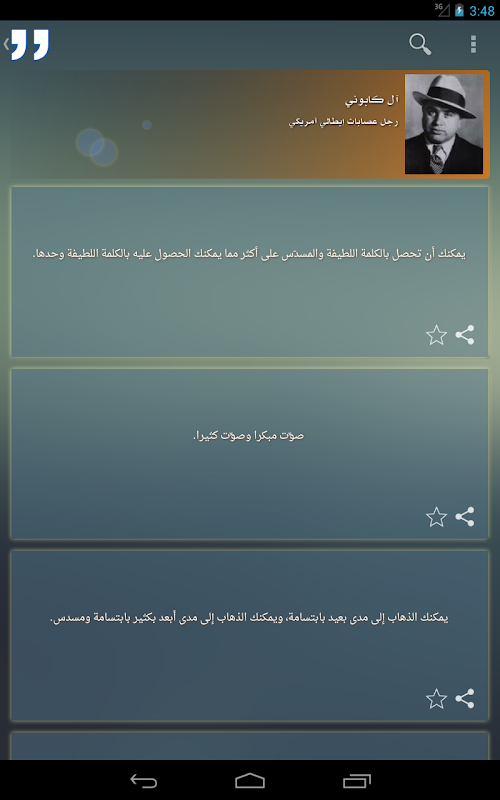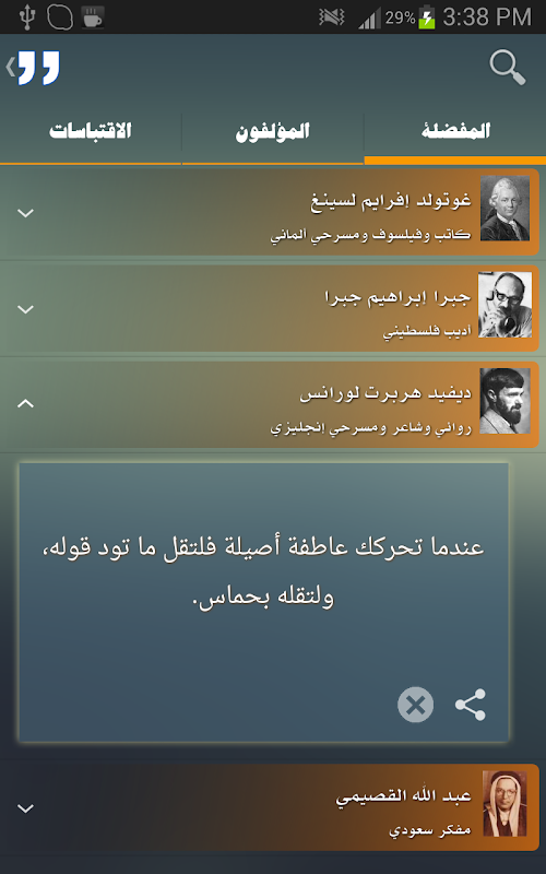 و يتميز بسرعة البحث في الاقوال و اضافة المقولات للمفضلة