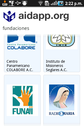 Esta app fue finalista del premio al Desafío Intel 2013 y ha sido apoyada por StartupChile.org y por el programa SEED de Brazil. Ha sido nominada como la mejor app del mundo del 2013 por los Mobile Premier Awards en el marco del Mobile World Congress en Barcelona, España.AidApp is the only app that lets you donations support your favorite NGOs and foundations with direct debit from your phone so you can easily contribute to a better world.