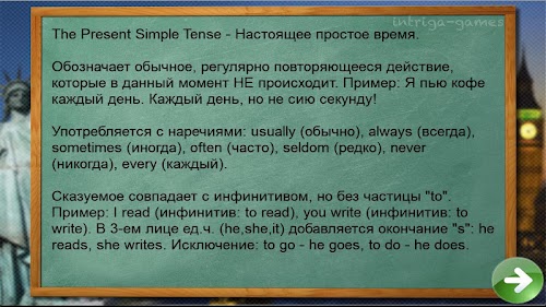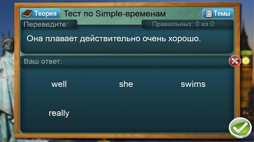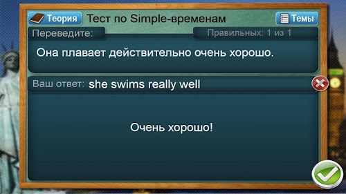 Прочитайте задание. Не глядя в предлагаемые варианты, постарайтесь перевести предложение в уме. Посмотрите на варианты. Если подходят - попробуйте набрать ответ и проверить его. Если не принимает - приложение подскажет правильный вариант, который Вы сможете запомнить и использовать в речевых оборотах при общении.