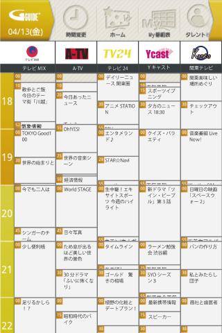 [2012/7/12]テレビ番組ラテ欄が最大5局表示に対応し、より見やすく!上部メニューに「もっとTV」アイコンを追加し連動しやすくなりました。