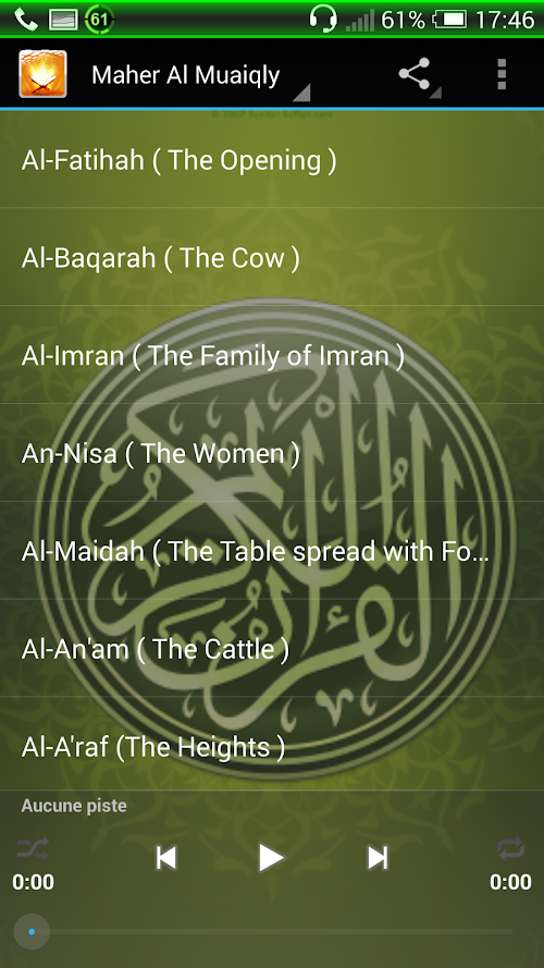 استمع الى القران الكريم كامل بصوت ماهر حمد معيقل المعيقلي امام الحرم المكي يتلوا القرآن الكريم على رواية حفص عن عاصم، ولد في المدينه المنوره المملكة العربية السعودية في عام 1388 هجري وتولى إمامة المصلين في المسجد الحرام من عام 1429 هجري حاصل على درجة الماجستير في فقه الإمام أحمد بن حنبل في كلية الشريعة بجامعة أم القرى.Listen to the Koran full voice Maher Hamad Maikl Mueaqly imam recite the Koran on Hafs from Asim, was born in Medina, Saudi Arabia in 1388 AH and took the imam at the Grand Mosque of the 1429 AH holds a master's degree in jurisprudence Imam Ahmad ibn Hanbal in the Faculty of Law at the University Umm Al-Qura.
