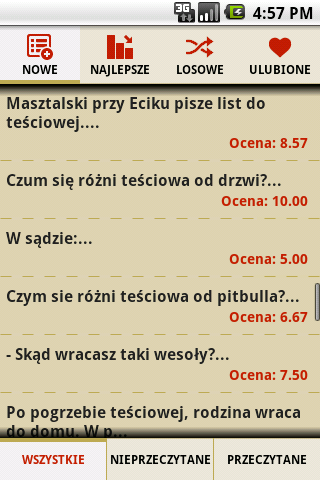 - wybierając: wszystkie, nieprzeczytane lub przeczytane określasz jakie kawały chcesz przeglądać;