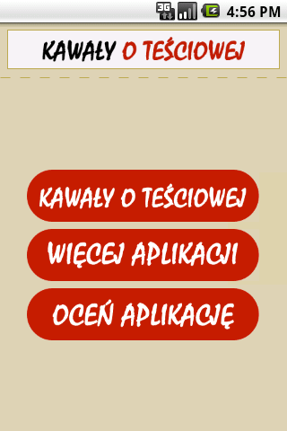 Kawały o teściowej na Facebooku: http://www.facebook.com/KawalDniaDownload the app "jokes and jokes about mother-in ', where you will find the best and unique in-law jokes. All the jokes are built into the app, so to read them you do not need access to the Internet. New pieces and ranking update takes place once a week.