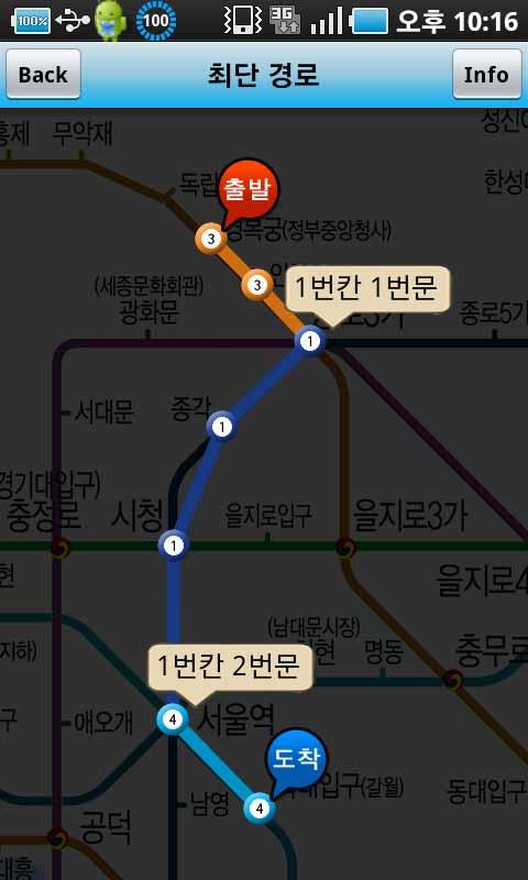 노선도의 멀티 터치 기능으로 수도권,부산,대구,광주,대전의 노선도를 확대 축소 하여 보고 최단경로 탐색기능및 도착정보를 바로 확인 할 수 있습니다.
