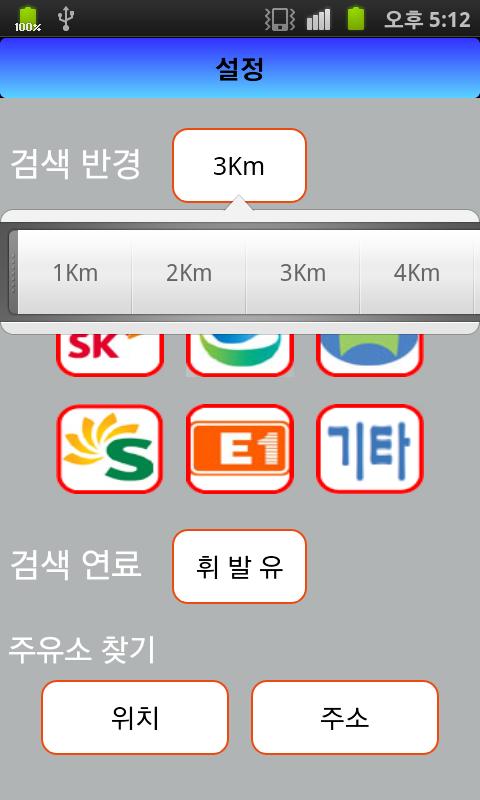 2.주유소 찾는 방법으로 위치나 주소 버튼을 누르시면 검색을 시작합니다.