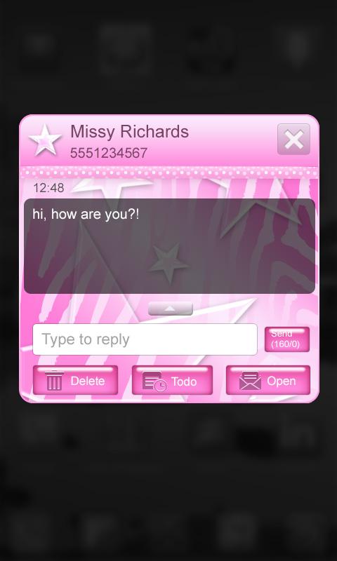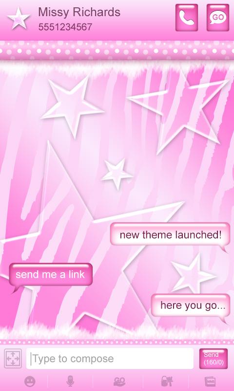 A cute classy pink zebra star theme with glass stars and plenty of pop to enhance your txt messages. Made for the awesome Go SMS Pro. 5 other colors to choose from...