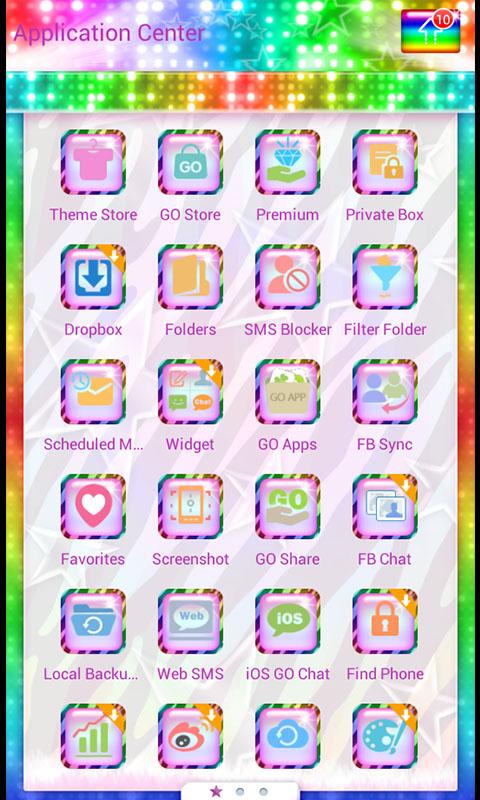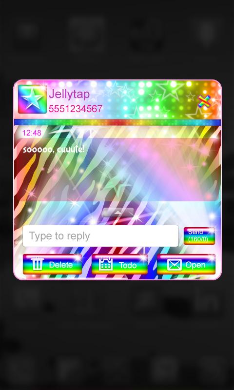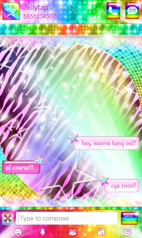 Take the stage and feel like a superstar! This Pop Star Go SMS Pro theme has it all. Tons of sparkles, stars, zebra print, glowing blasts, rainbow neon lights, and rainbow fluffy boa feathers. Glam up your phone with this fun new rainbow pop star theme!