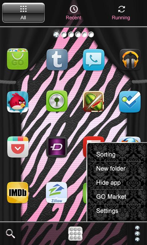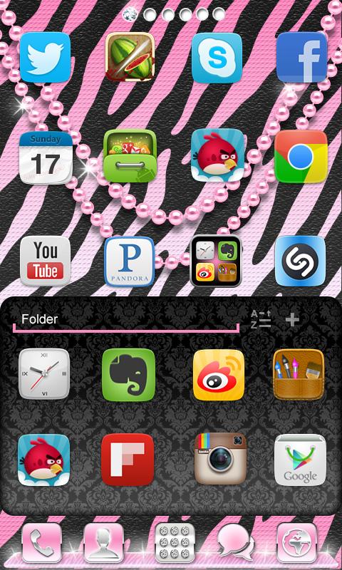 A super luxurious theme for Go Launcher. Diamonds, pearls, fine materials, all exquisitely detailed. Everything you need to glam up your phone in style! Includes 8 matching HD wallpapers, 7 3D styled HD docks, 5 App Drawer Backgrounds, and a bunch of fun cute icons that can be applied to any app you like. Lots of different styled elements are included, mix up the wallpapers and docks to give your phone a totally new look.