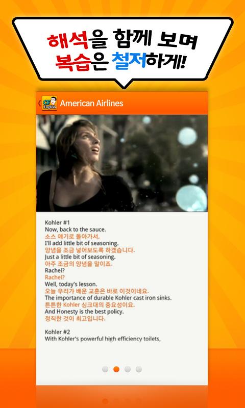 3. CF & 해석 : CF 영상을 우리말 해석과 주요 어휘 및 표현 등과 함께 즐길 수 있습니다.