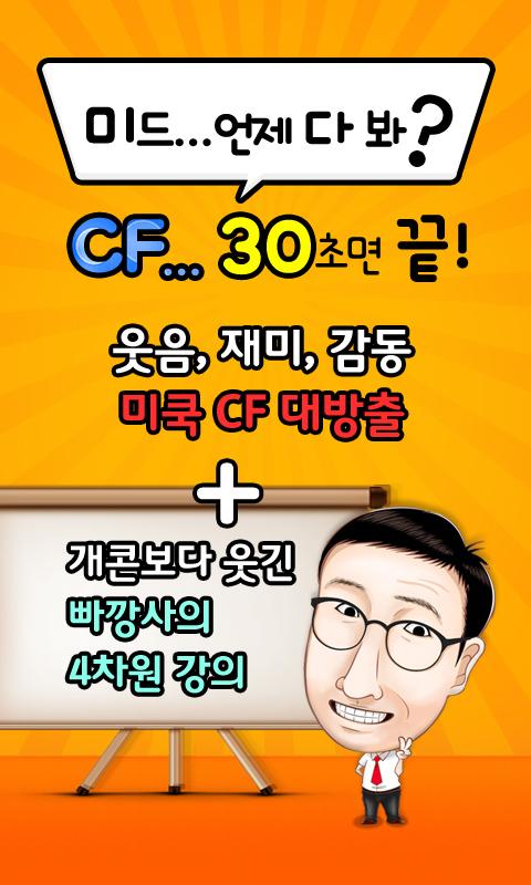 지하철에서, 버스에서, 쉬는 시간에, 점심 식사를 기다리면서 오리지널 30초 CF 영상을 심플하게 즐기세요.