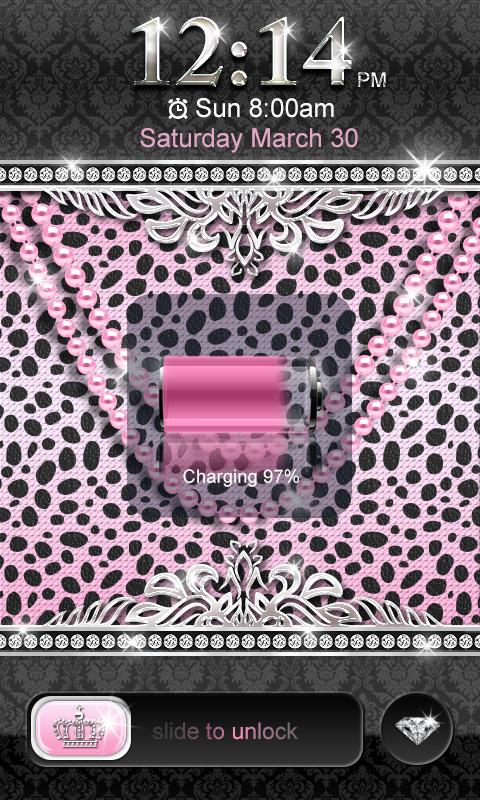 A super luxurious theme for Go Locker. Diamonds, pink pearls, all exquisitely detailed. Slide the sparkling crown to unlock your phone or tap the diamond to open the camera. When charging, a pink battery animation is displayed.