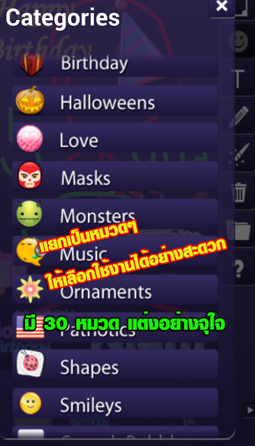 + แต่งรูปคำคม แต่งรูปอวยพรวันเกิด หรือจะแต่งรูปตลก แอพนี้ก็สามารถทำได้ เรามีหนวด แว่วตา ปากสีสัน หมวกแฟนซี หน้ากากแฟนซี ในแบบใหม่ๆ ไม่ซ้ำใครให้คุณได้ใช้งาน