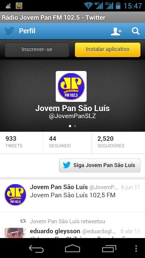 Curta a programação mais jovem e descolada do rádio neste aplicativo desenvolvido especialmente para a transmissão da Jovem Pan São Luis - 102,5 Mhz e sua programação local. Uma empresa do Grupo Zildeni Falcão.Enjoy the youngest and funky radio programming in this application specially developed for the transmission of San Luis Jovem Pan - 102.5 Mhz and its local programming. A company's Zildeni Falcon Group.