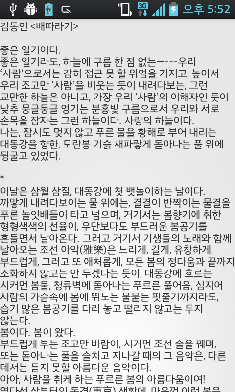 한국 문학사에 큰 업적을 남겼던 작가들의 작품들을 모두 무료로 감상하실 수 있습니다.