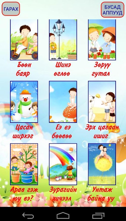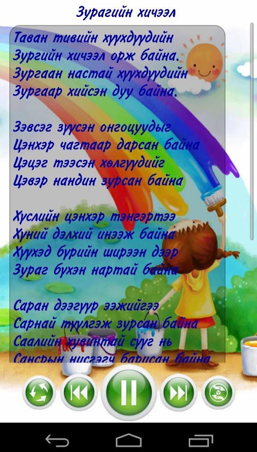 If you are looking to download other versions of Хүүхдийн Дуунууд 1 Android App, We have 10 versions in our database. Please select one of them below to download.
