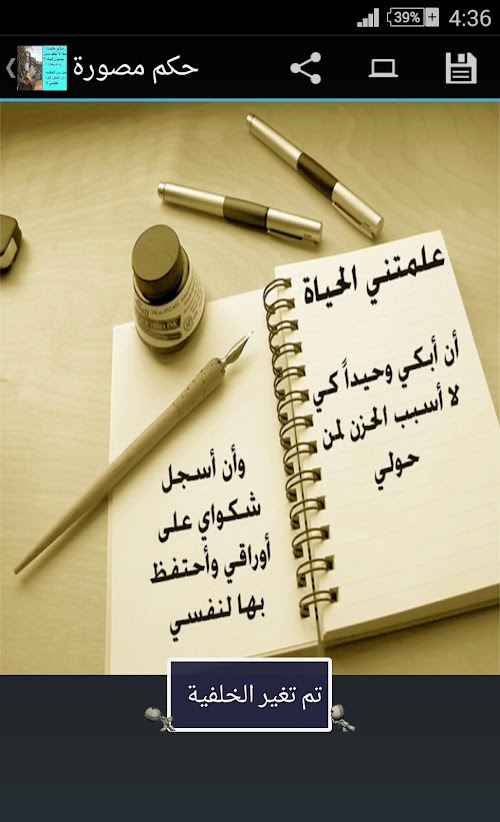 أتمني ان ينال اعجابكم و تحدث الينا عند وجود مشاكل في التطبيق حكم واقوال مصوره بدون نت Judgment and sayings cameraman without the Net is a collection of the judgment and the likes and pictures about life in 2016 and the sayings and the rule cameraman without Internet can save the wisdom that like or talk liked on mobile as well as the dissemination among friends with Facebook. And Witter and Alwats and put the words and the rule of gold background screen Arabs rule