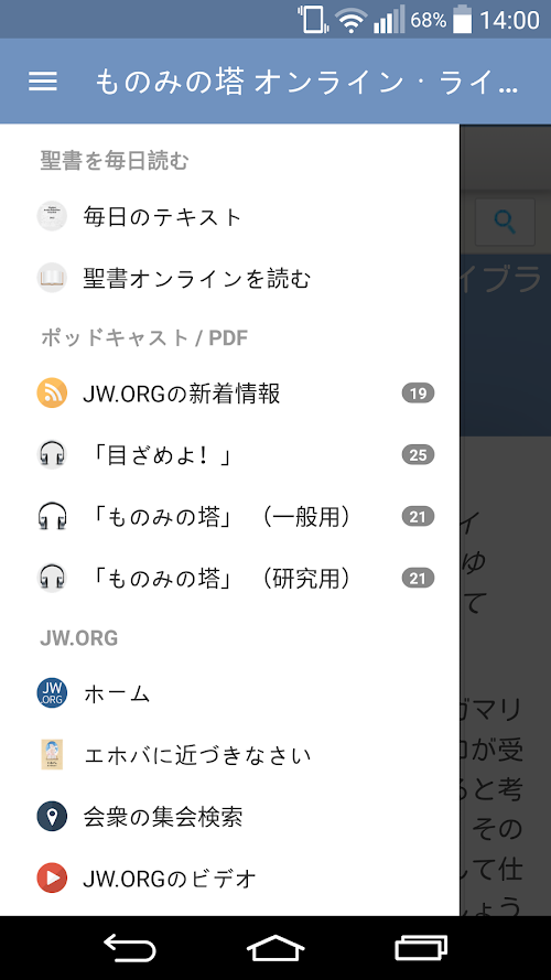 With this app, you can listen to the latest magazine of smartphones and tablets via podcast. In addition, I easily get to the official website. But, tower of Watchtower Library you can reach them.