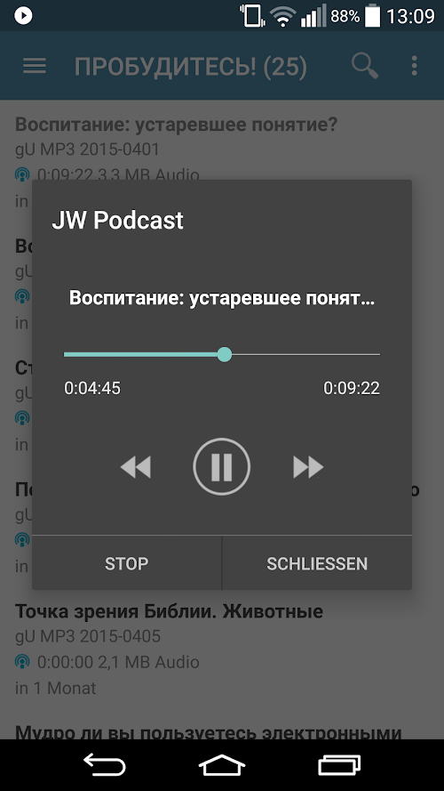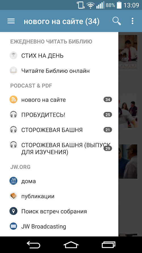 Это приложение позволяет слушать последние выпуски журналов на вашем смартфоне или планшете в виде подкаста. Также через него можно легко перейти на официальный сайт, в том числе он-лайн библиотеку Сторожевой Башни.